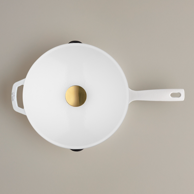 This modern take on the classic cast iron skillet delivers the same heat distribution, even cooking, and durability without seasoning or complicated care rituals. Ready to go out of the box, this cast iron skillet is oven-safe to 500℉ (260℃), compatible with induction cooktops, and enamelled inside and out. Designed in California, our skillet is the ultimate companion for our 5.5 quart dutch oven - even the lid is a perfect fit!
