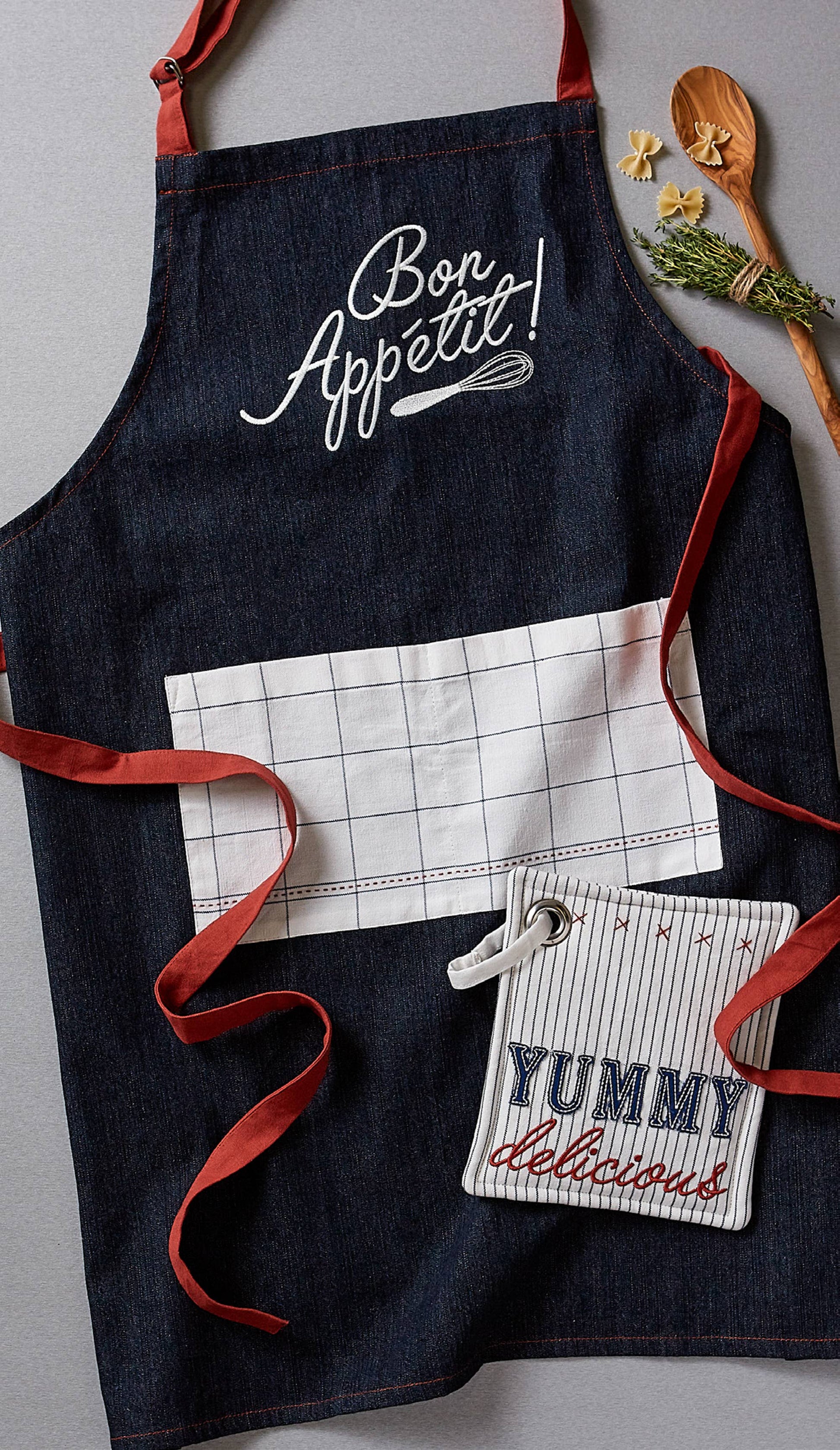 Bon Appetit Denim Embroidered Apron