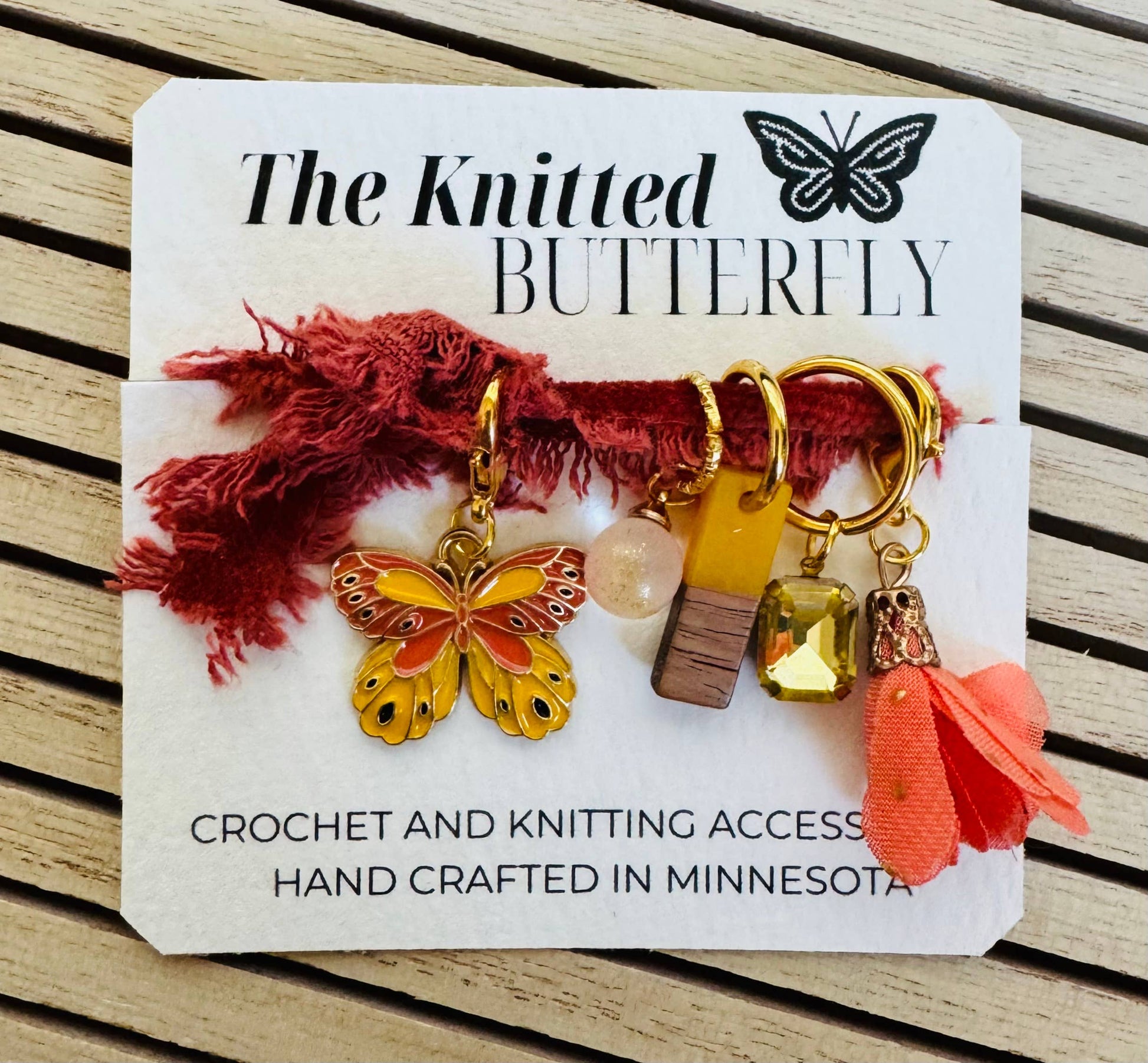 Add a touch of whimsy to your knitting or crocheting projects with the Butterfly Kisses stitch markers and progress keeper collection. These charming accessories are not just practical but also a delightful way to add a touch of magic to your crafting journey.