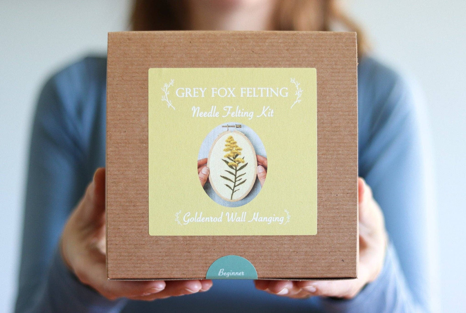 Create your own Needle Felted Goldenrod wall hanging! This beginner-friendly kit will introduce you to the art of two-dimensional needle felting, also referred to as wool painting. You’ll be guided, step by step, as you poke colorful bits of wool into a sheet of felt to create a lovely work of art that even comes with its own frame! This felting kit comes thoughtfully packaged in a labeled kraft box, ready for gift giving!