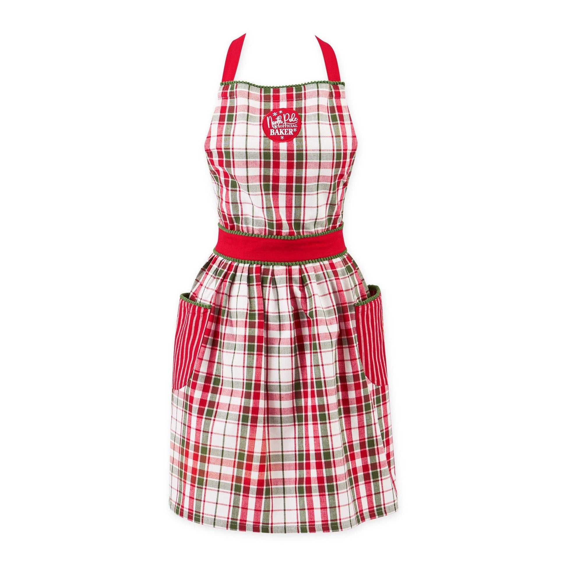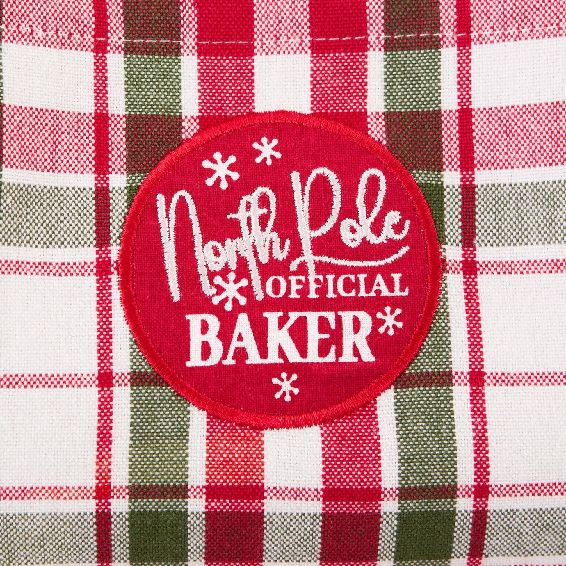 Our Holly Jolly Cookie Co. Apron is crafted from 100-percent cotton and machine washable for easy care. Designed with convenient utility pockets, an adjustable neck loop and generous waist ties for a comfortable fit. Part of our Holly Jolly Cookie Co. Collection, the apron is embellished with contrasting pockets, neck loop and waist ties, an embroidered applique North Pole Official Baker patch and finished with mini pom-pom trimming details.