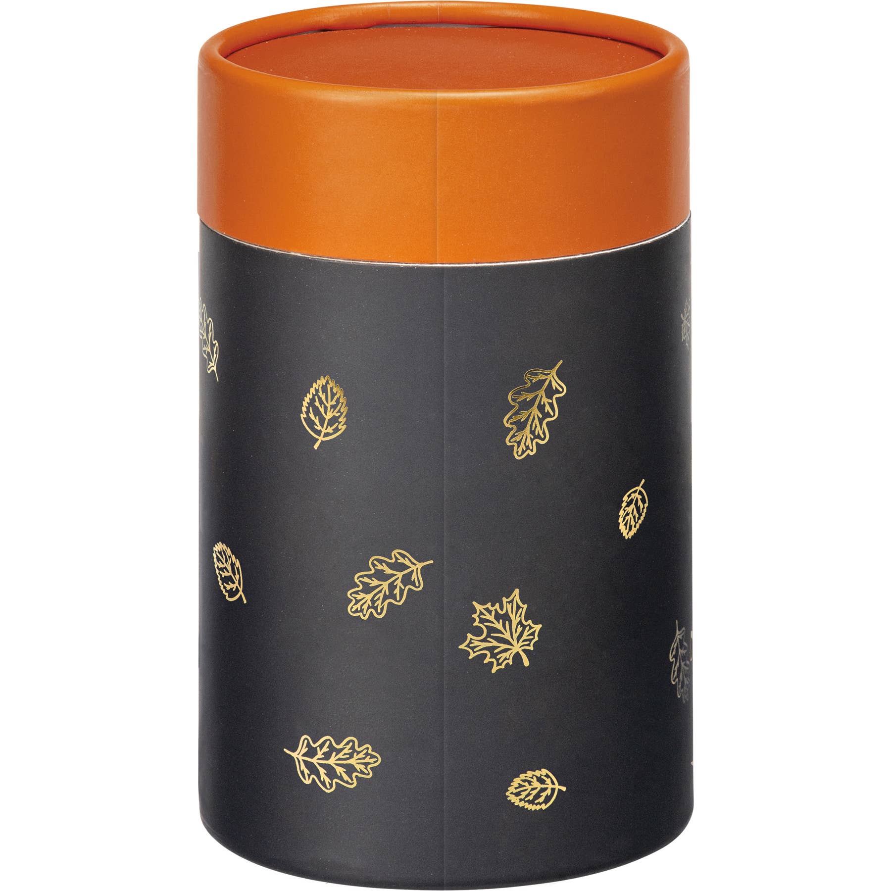 A 15 oz stemless wine glass from our Fall & Harvest Collection displaying a metallic gold design of autumn leaves with humorous "Because I'm Hosting Thanksgiving" sentiment. Our I'm Hosting Thanksgiving wine glass comes packaged in a high-quality giftable cylinder box showing full design in metallic foil. Hand-wash only. A fun seasonal kitchen accessory that is also great for gifting.