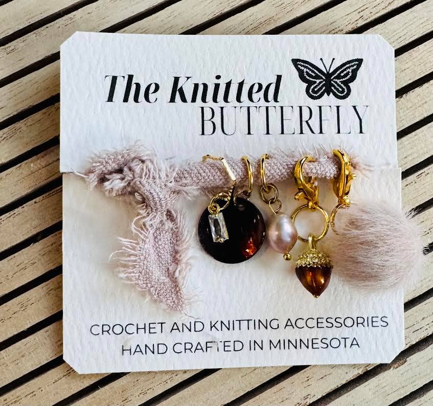 The Into the Forest collection features beautifully crafted stitch markers and progress keepers. Each piece highlights natural beauty, adding a touch of charm to your knitting or crochet projects.