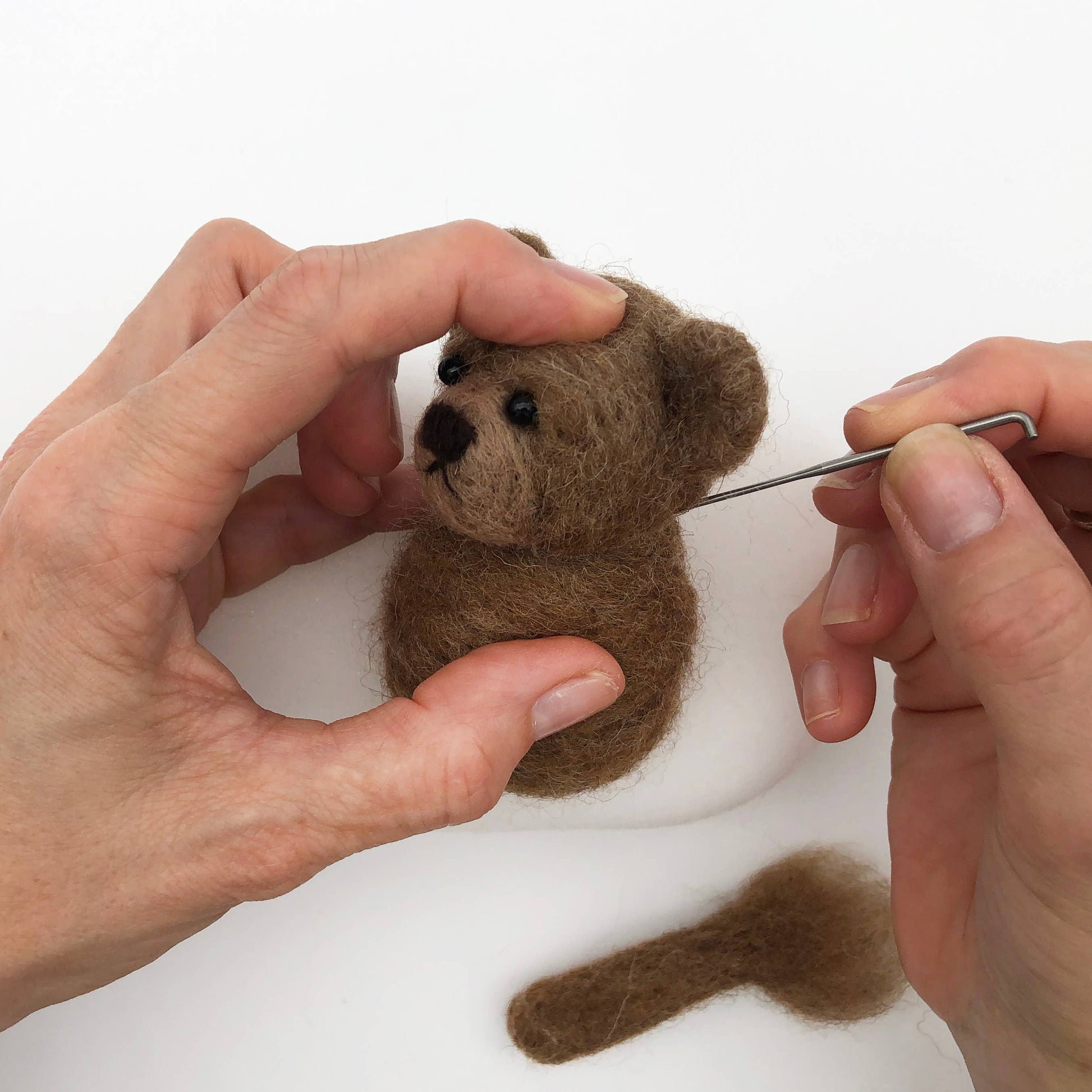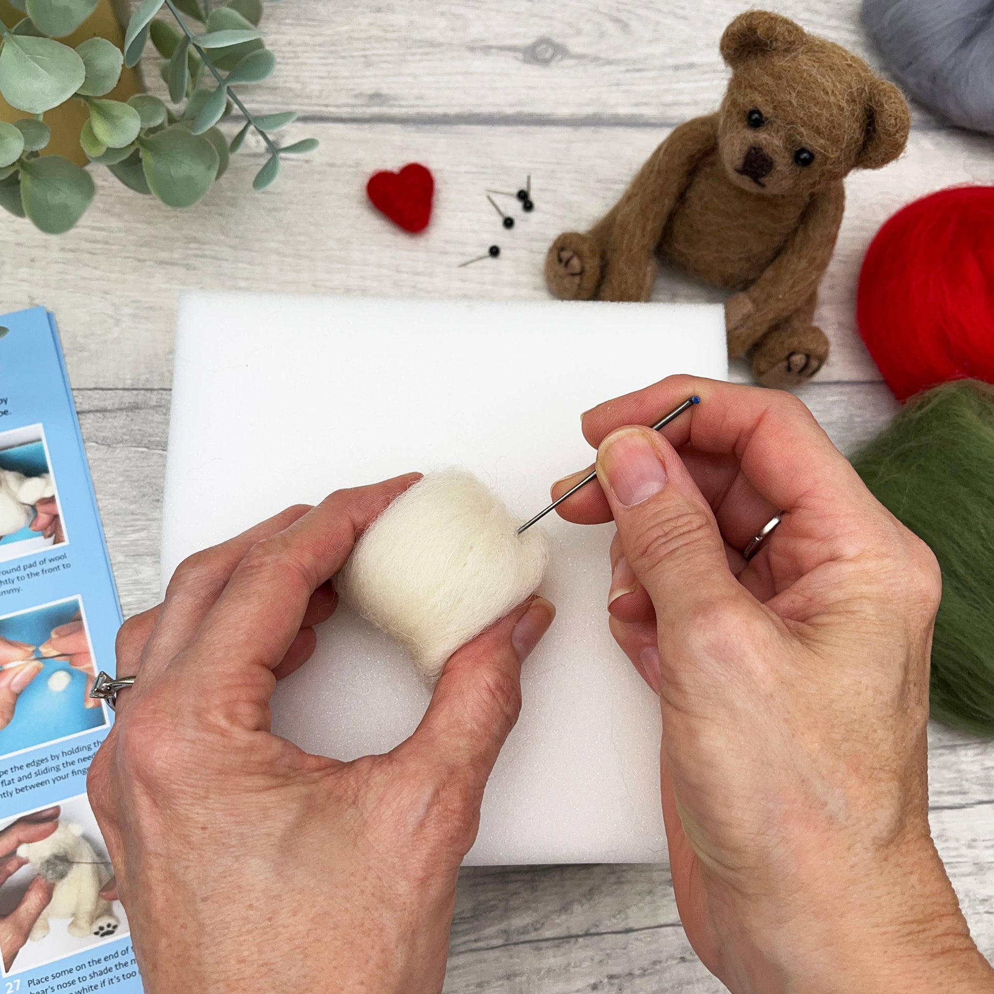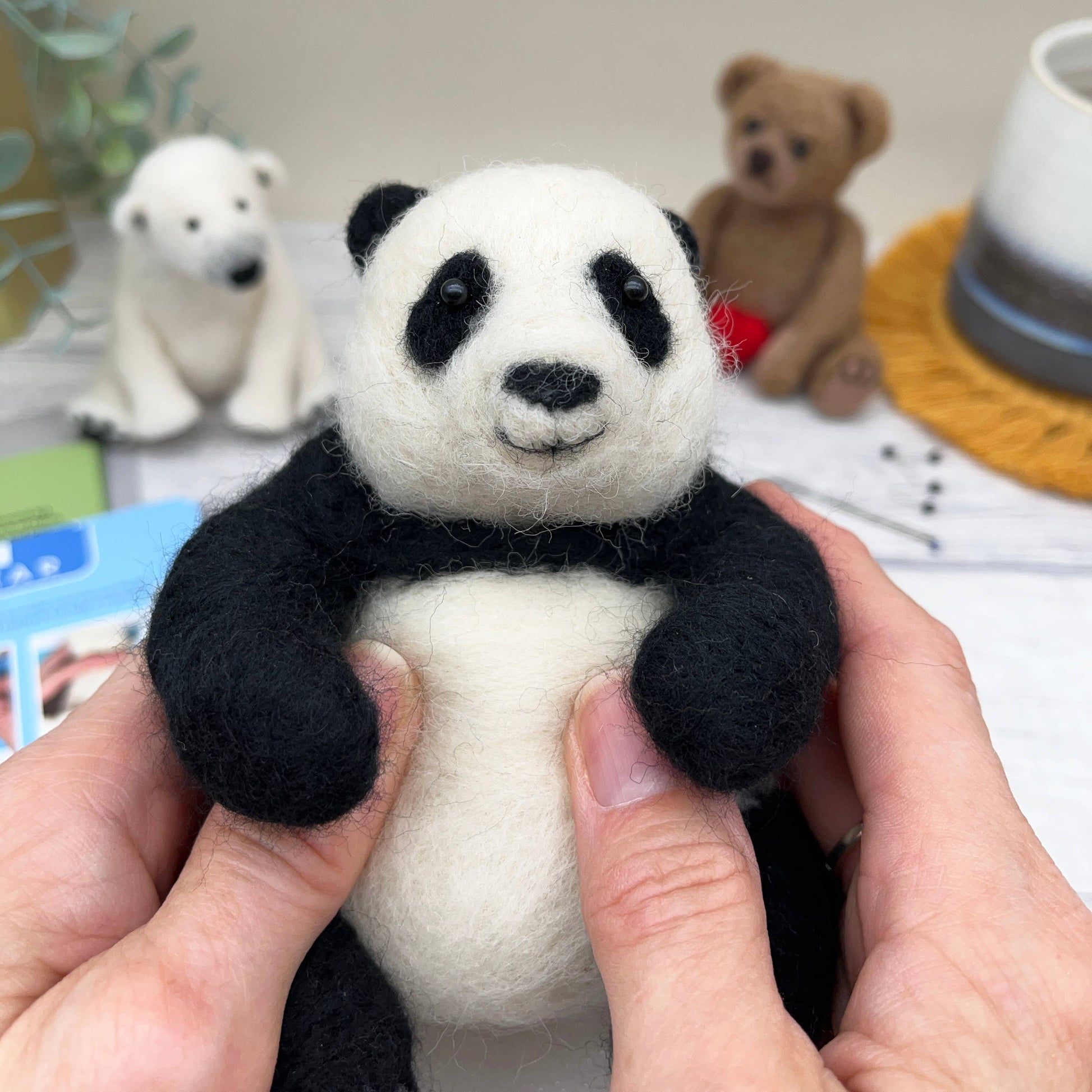 Packaged in a stylish display box, this craft kit for adults contains a beautiful selection of natural wool fibres, eyes, and three sets of step-by-step photographic instructions showing you how to make a polar bear, a panda and a teddy bear. Included in the kit is a felting mat and THREE specialist felting needles so you can get started straight away. This bumper set is suitable for more advanced felters but if you have not needle felted before, you can discover all of our top needle-felting tips contained in our basics guide. You will also find a little goodie bag with a selection of coloured wools so you can make your bears a hat or scarf, let your imagination get to work!