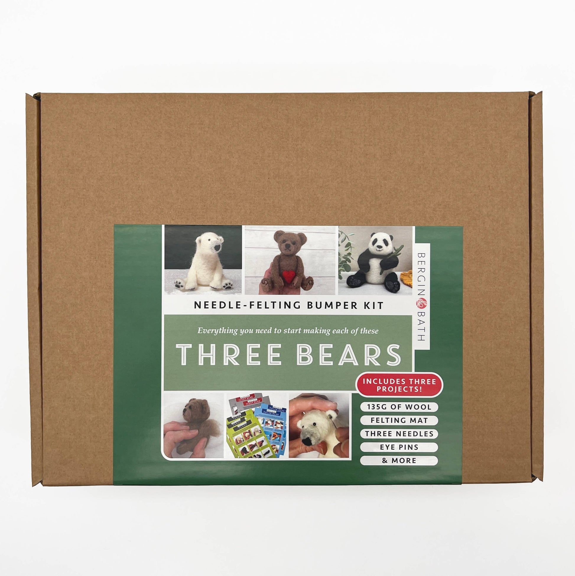 Needle Felting Bumper Kit - Three Bears. A premium starter k