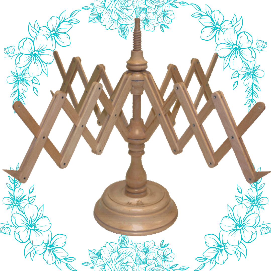 The Nirvana Twister Yarn Swift is a hand crafted, table top, hardwood swift. Light and portable, the Twister can be easily disassembled so it can be quickly stored or packed for travel. The Twister’s arms extend to hold a skein up to 60 inches.