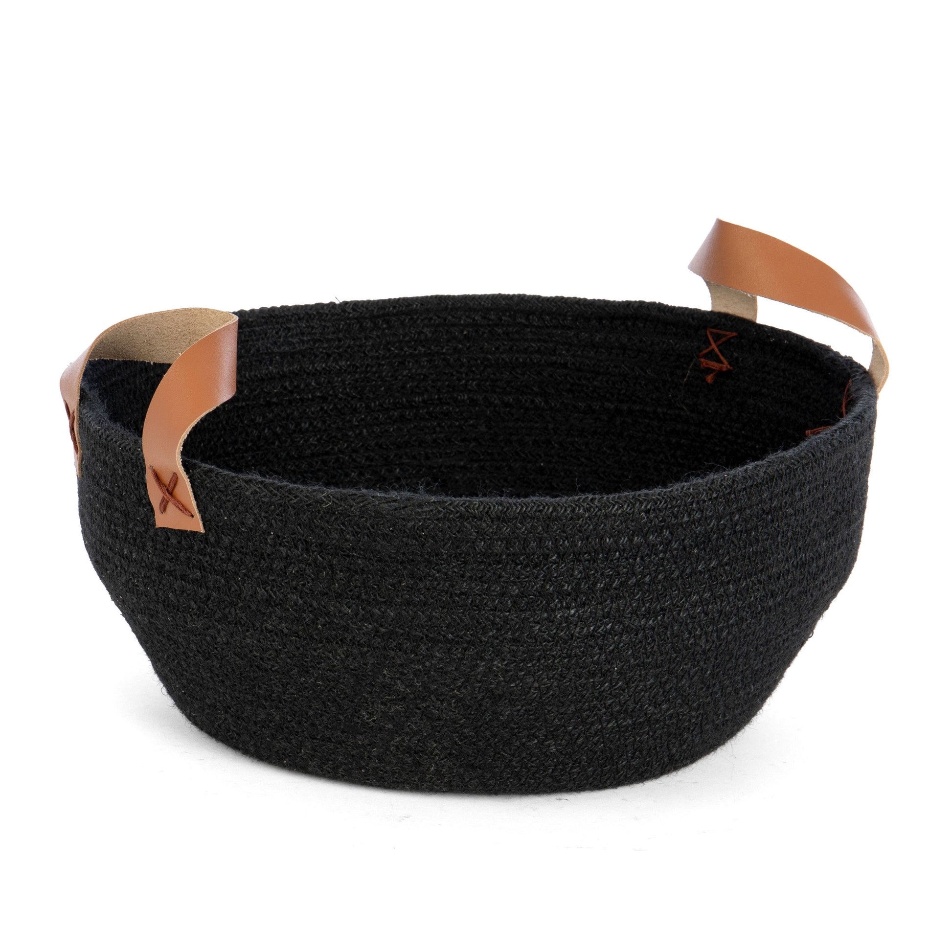 Add a touch of elegance to your home with our Round Jute Bowl, designed with Black Leather Side Handles. This 13.75" diameter and 6" high bowl, with a 9" diameter base, is a versatile piece that blends functionality with aesthetic appeal. Crafted by Willow Group, a brand with over a century of expertise in home décor and display, this bowl is a testament to our enduring commitment to quality and style. Enhance your home accents with this unique tabletop décor.