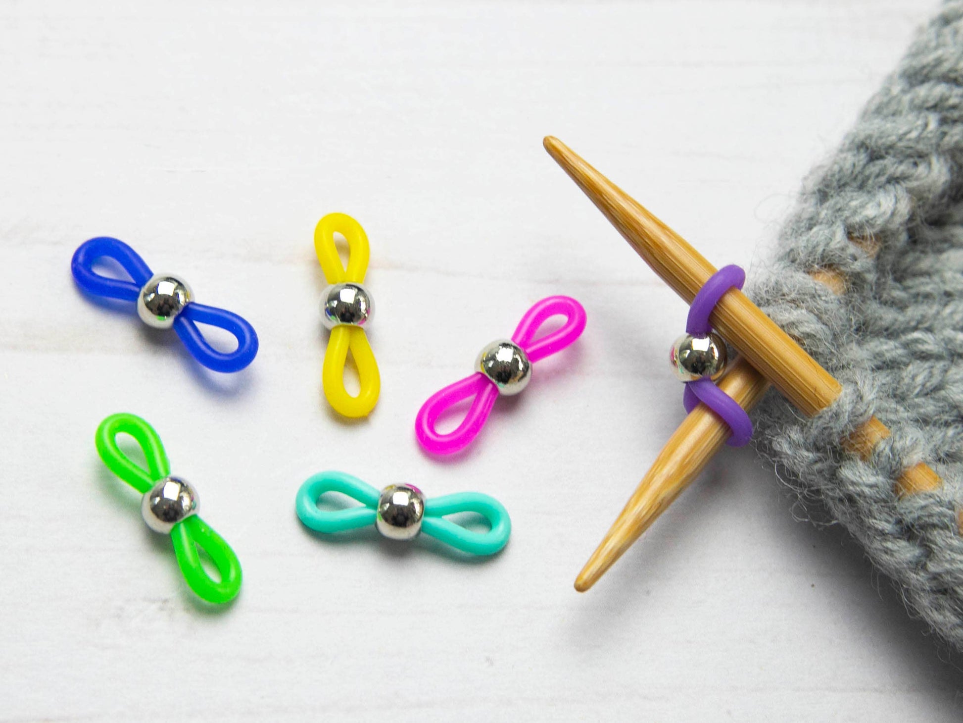 These are the hottest must-have notions for any knitter. These cute and colorful stitch huggers go on the end of your knitting needles to prevent your stitches from coming undone when your project is set down. You will wonder what you did before you had these fun knitting stitch stoppers.