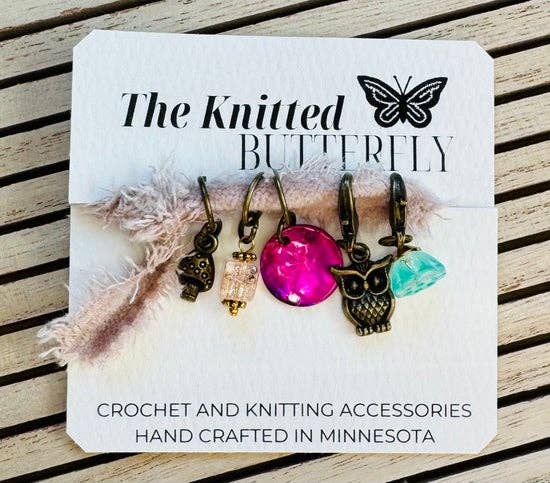 Enter the whimsical world of knitting with 'Whoo's Watching' - a charming owl-themed stitch marker and progress keeper set. Keep your knitting on track and add a touch of woodland magic to your projects with these adorable accessories.