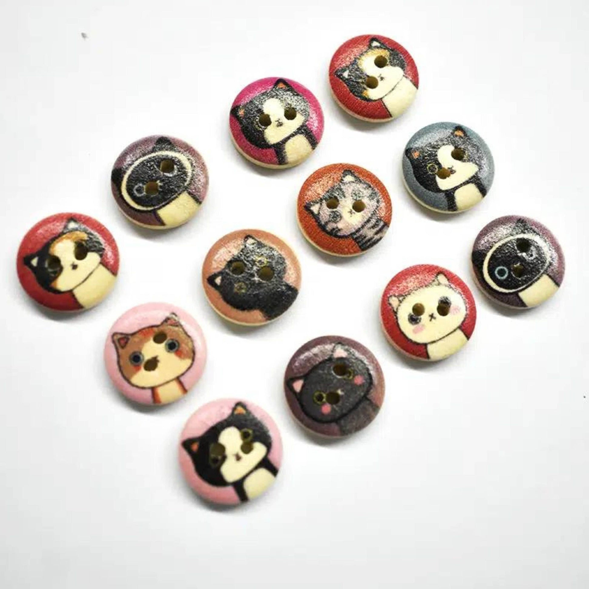 Wooden Cat Buttons, Meow Buttons, Sewing Supplies, Kitten Bu